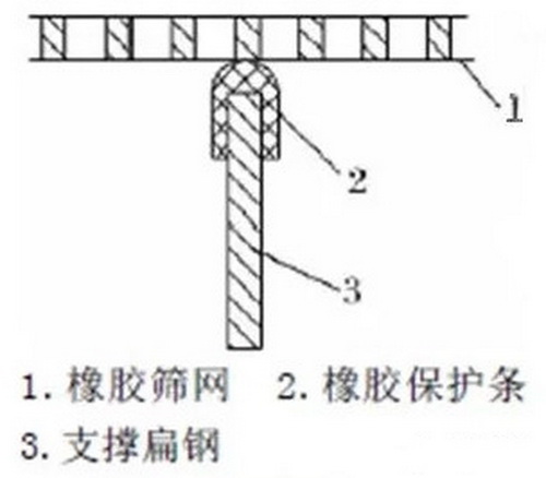 (1)將支撐梁(扁鋼)改為角鋼,再在角鋼上表面襯膠,減少篩網與角鋼的剛性接觸;